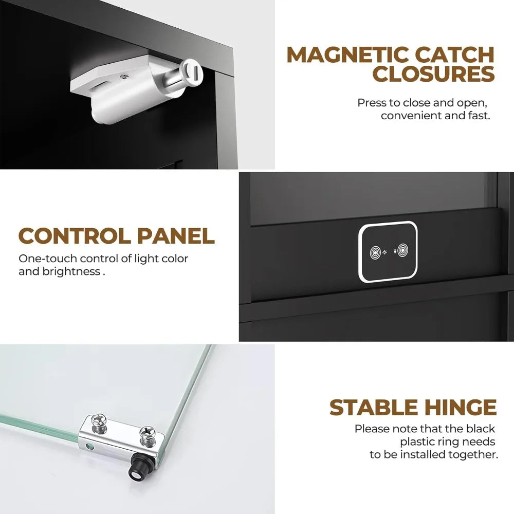 - 【3 Color LED Lights】Display cabinet features 3 color LED lights that add a modern touch to your living space and allow for clear display even in the dark. 3 colors lights: white light, warm light, blue light, brightness adjustable.