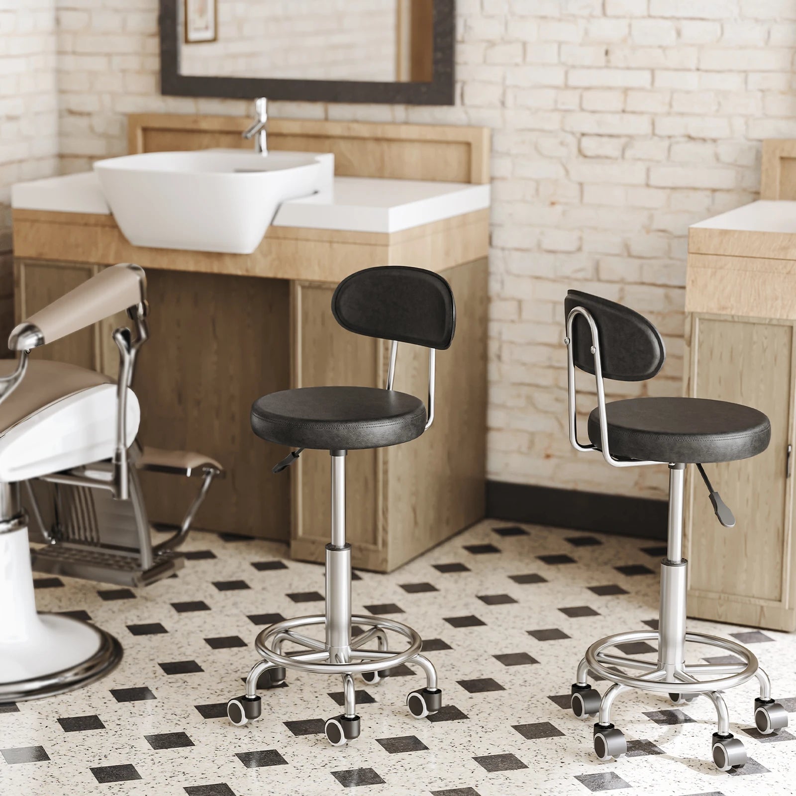 HOOBRO Height Adjustable Rolling Stool 360° Rotating Drafting Chair Multi-Purpose Office Desk Chair for Barber Shop