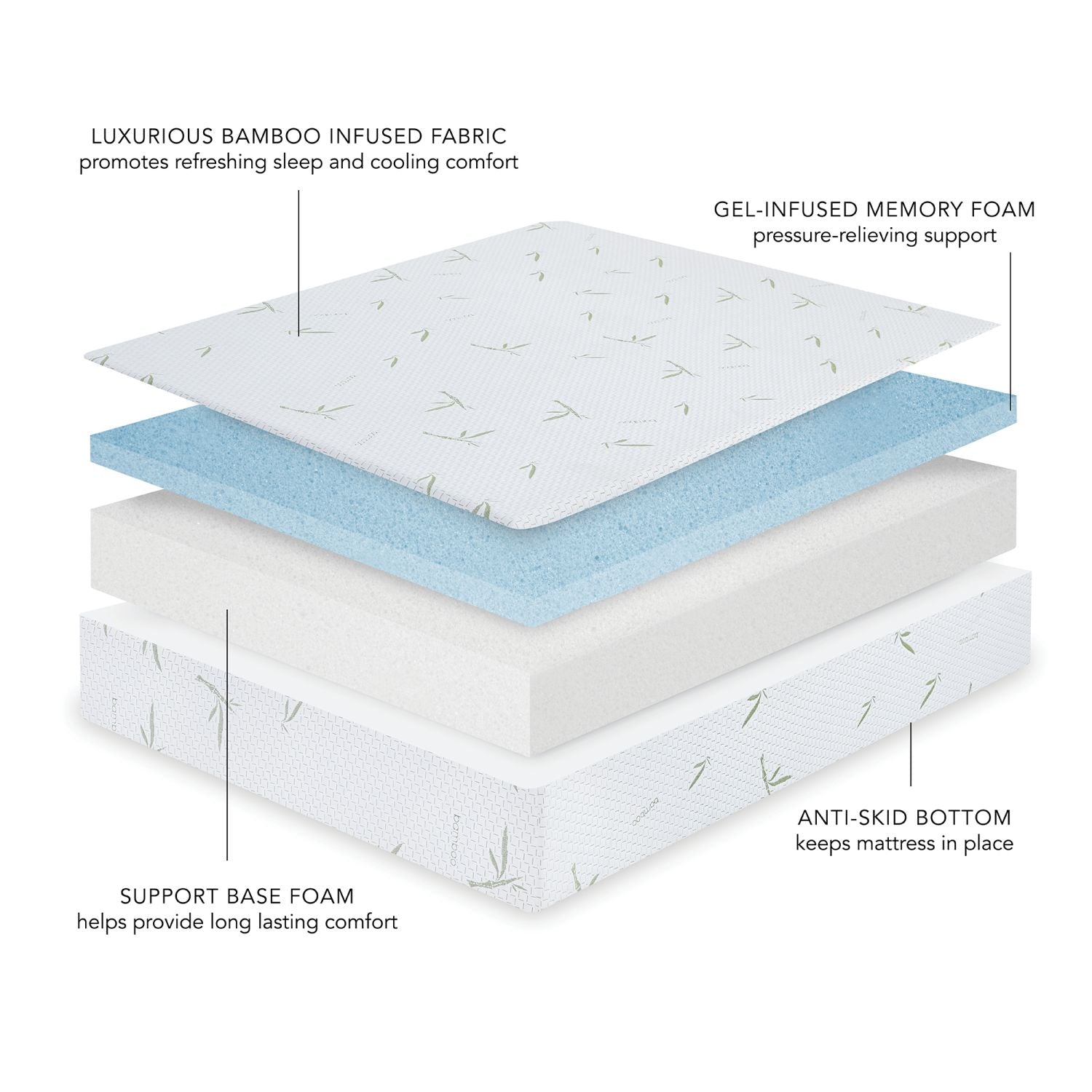 Experience refreshing comfort when resting on the supportive memory foam and hypoallergenic bamboo infused cover found in the 10-Inch Memory Foam Mattress. '