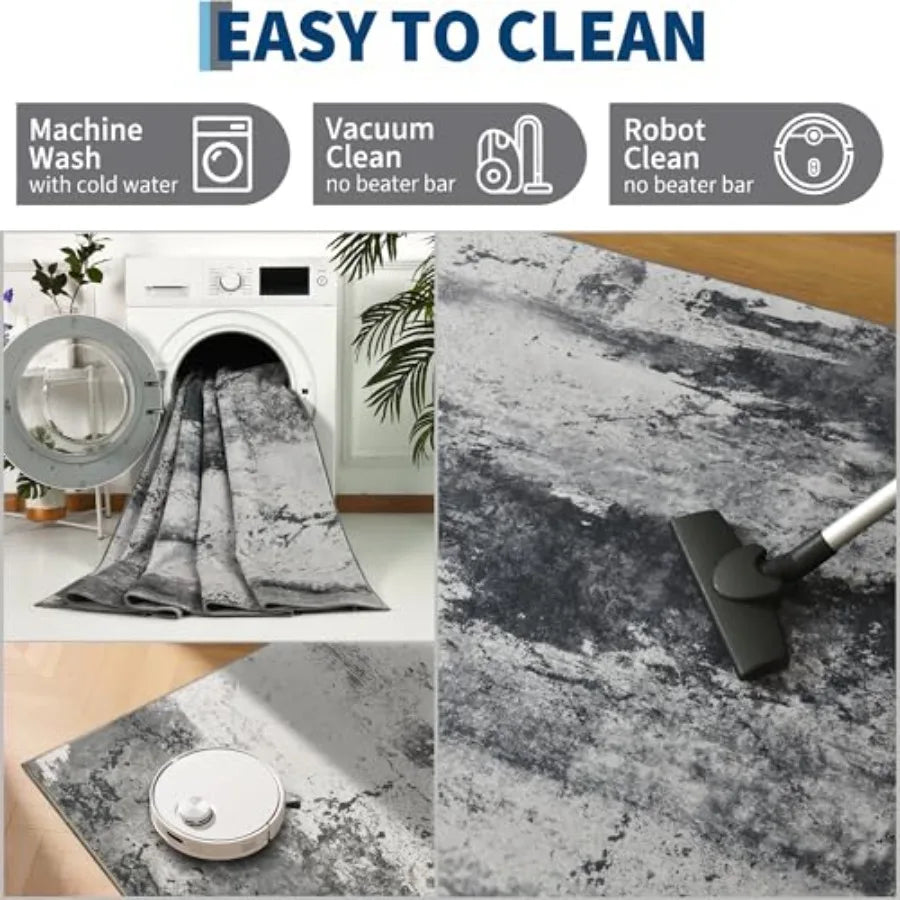 Non-Slip Backing: Equipped with a TPR non-slip rubber backing, this big rug stays securely in place on smooth floors, enhancing safety while prevents heavy traffic from scuffing the floor; Ideal for homes with kids or pets family members, it helps prevent slips and falls while maintaining style and comfort