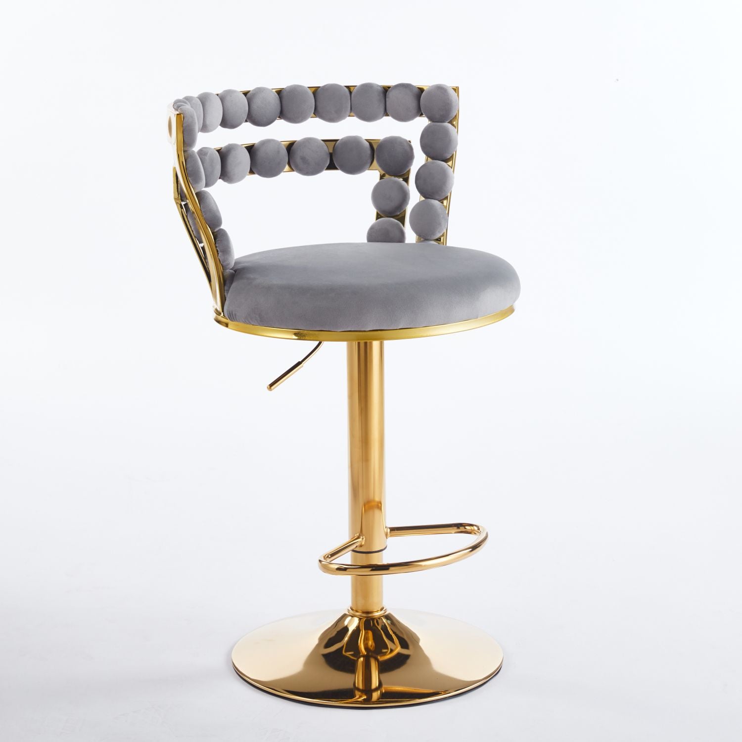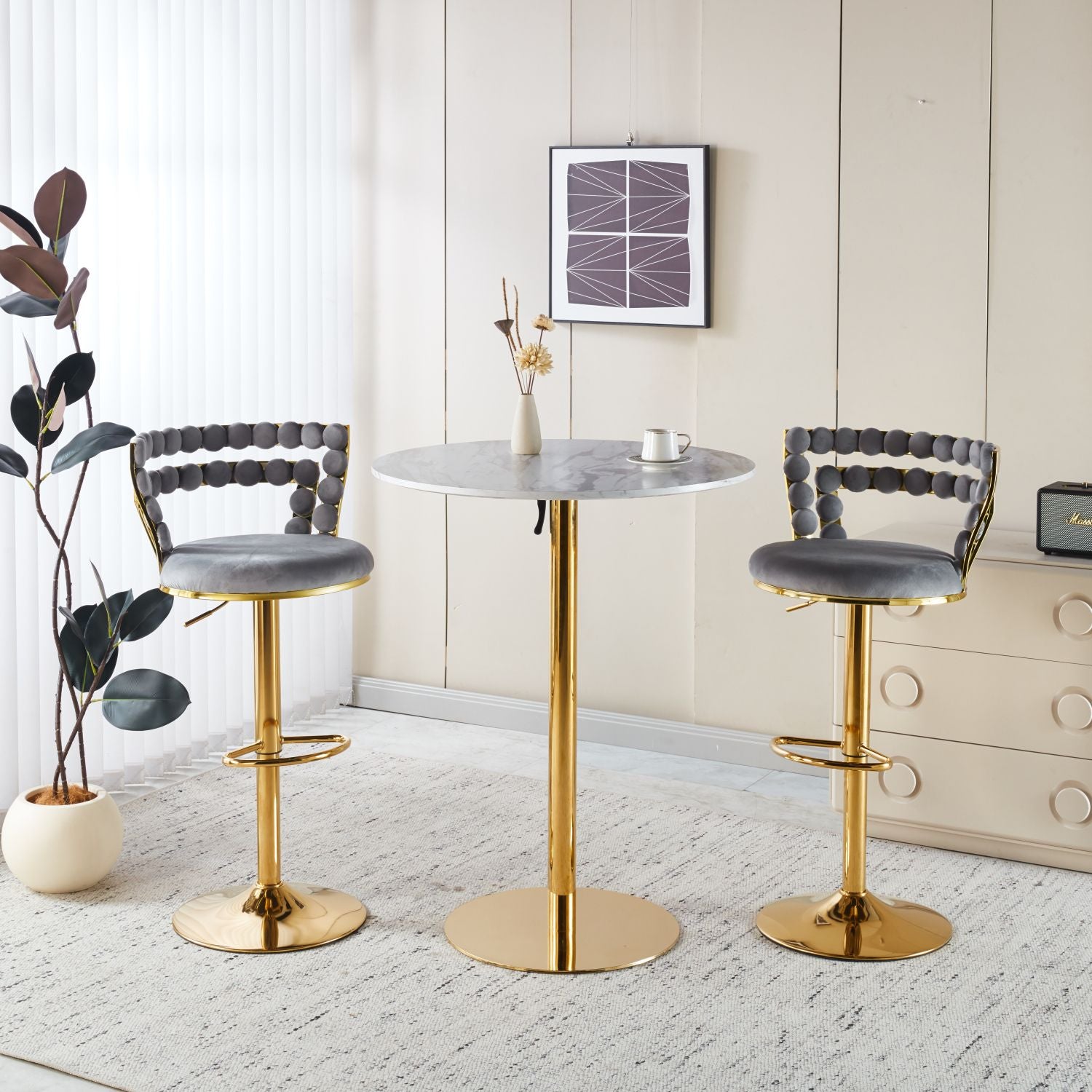 Modern Bar chair(set of 2 ) with golden color iron tube legs, soft cushions and comfortable backrest, suitable for dining room, living room, cafe,Bar stool,grey