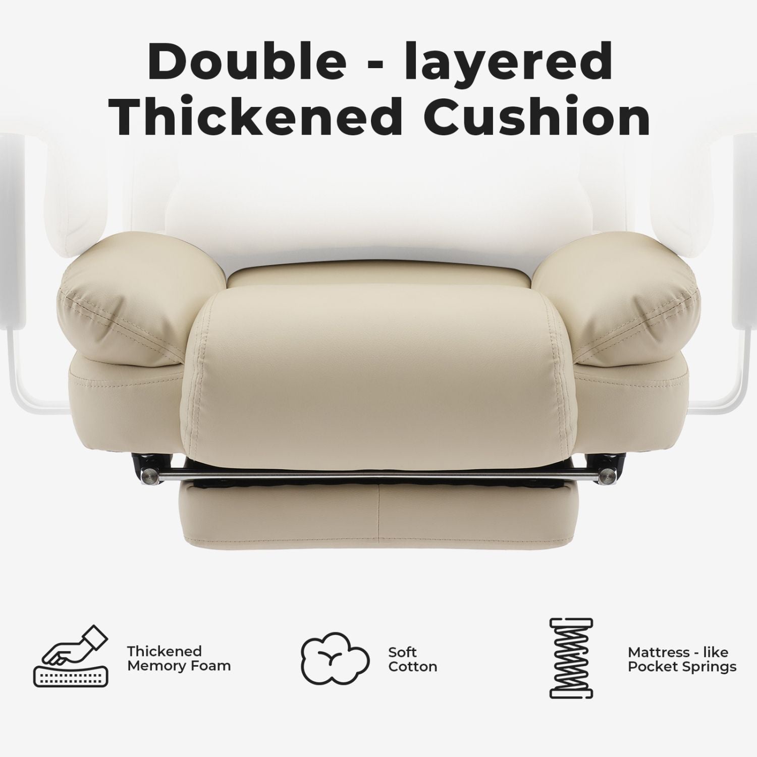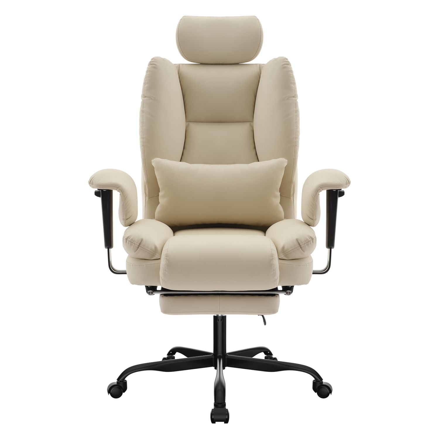Office Chair Ergonomic 200 kg PU Leather Computer Chair with Lumbar Support and High Backrest, Ergonomic Desk Chair with Liftable Headrest, Beige