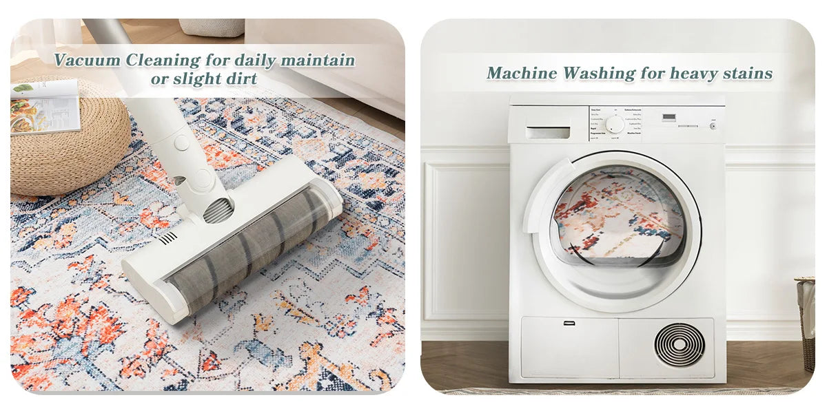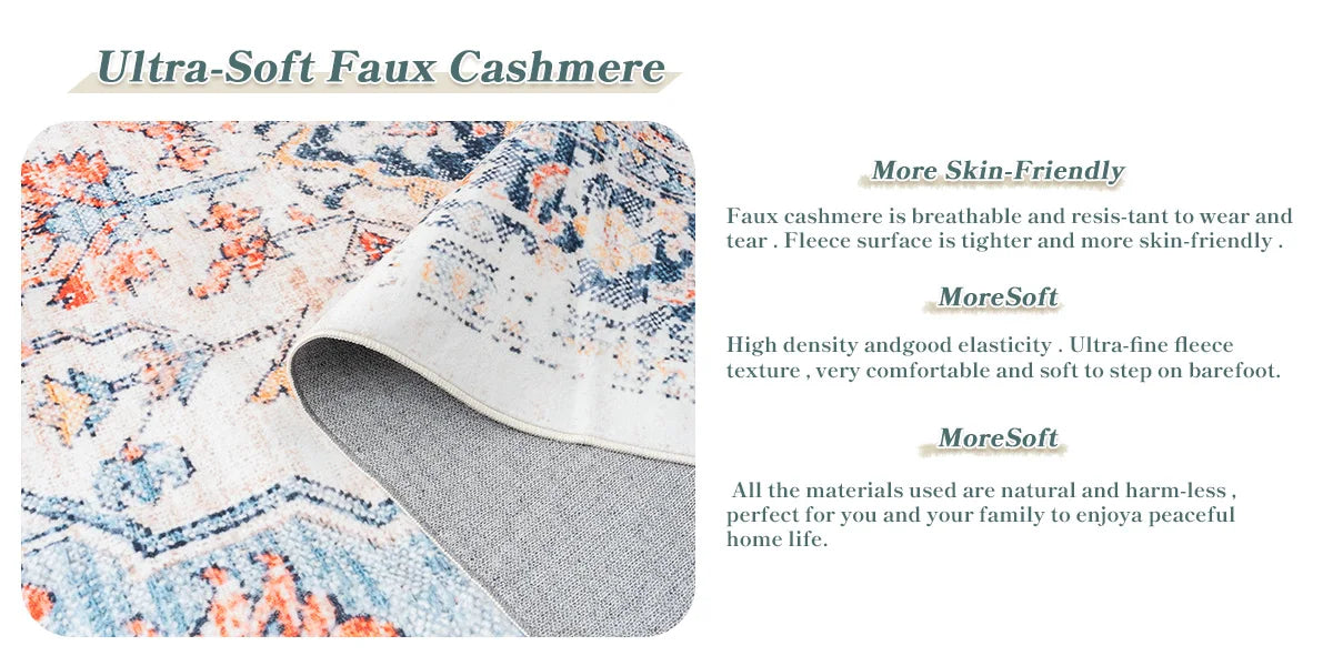 Orhopui vintage boho design, washable area rugs non-slip rugs for living room bedroom traditional woven rugs stain resistant