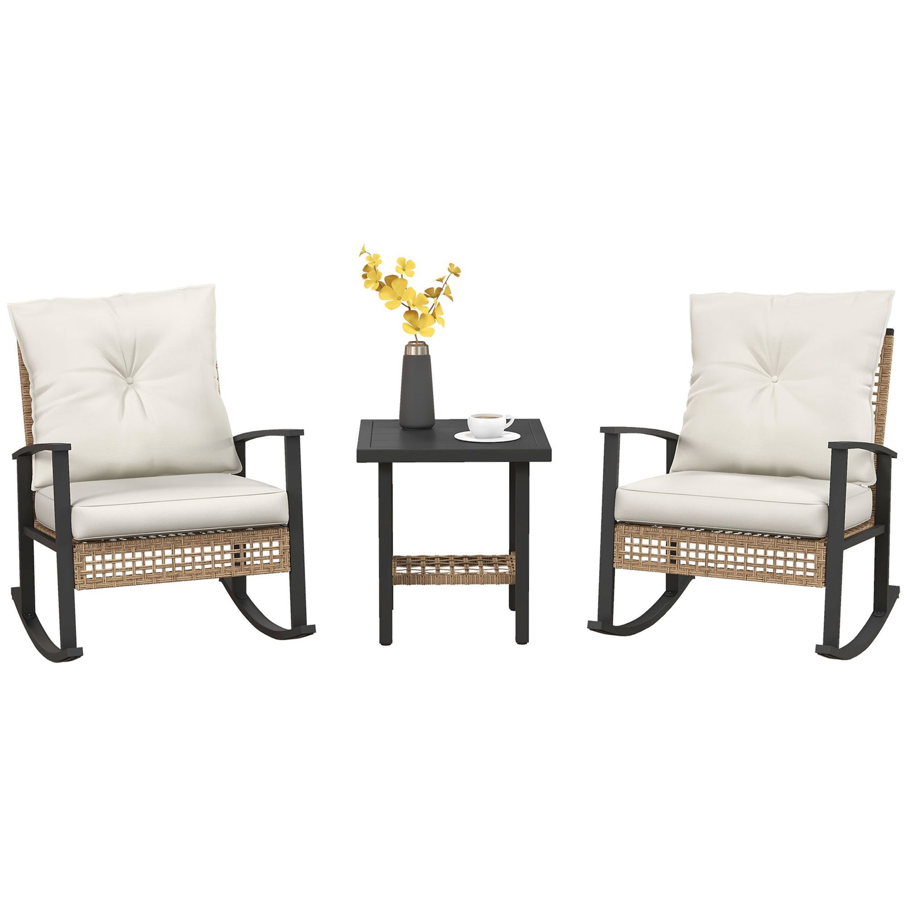 Outsunny 3-Piece White Wicker Bistro Set – Rocking Chairs & Coffee Table | Trufairs