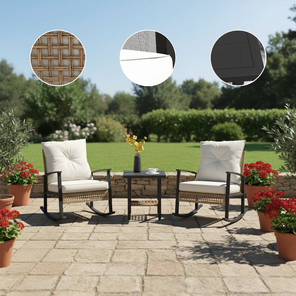 From arrival to regular maintenance, this set is hassle-free. The cushions feature zip-off covers so you can easily remove them for spot cleaning. Wipe the frame and table surface with a damp cloth to keep things looking fresh. Thanks to the weather-ready rattan and powder-coated steel frame, you get long-lasting use without high-maintenance upkeep.