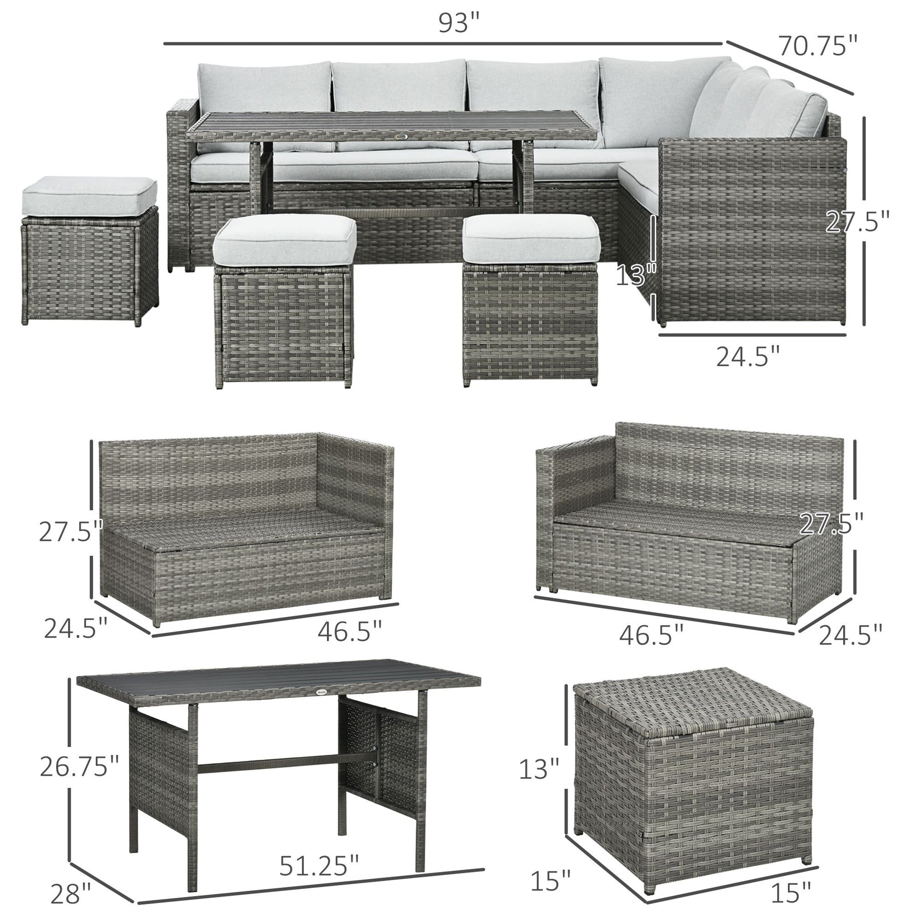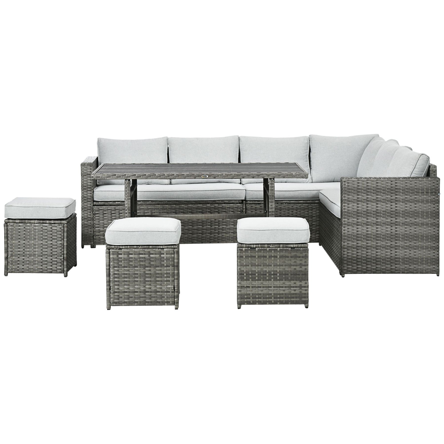 Do you like having family and friends over for dinner or throwing parties? Outsunny's outdoor sectional sofa has the pieces you need. With three loveseats that convert into an L shaped couch and three footrests that double as stools, you have enough room to keep a crowd comfortable. Every seat is cushioned, and a large dining table gives you room for dinner, drinks, dessert, or a board game. Stylishly handwoven with PE rattan to be water safe, it helps you enjoy the outdoors even more.