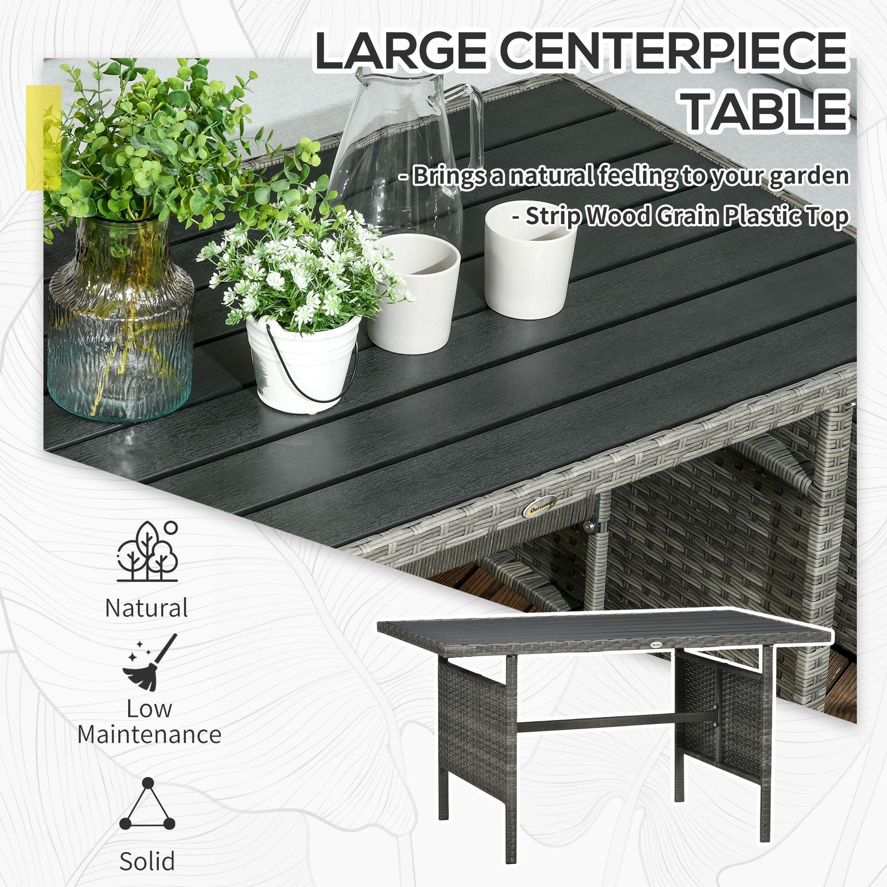 Outsunny 7 PCs Patio Wicker Furniture Set, Outdoor Sectional Furniture Conversation Sofa Set with Wood Grain Plastic Top Table, Mixed Gray