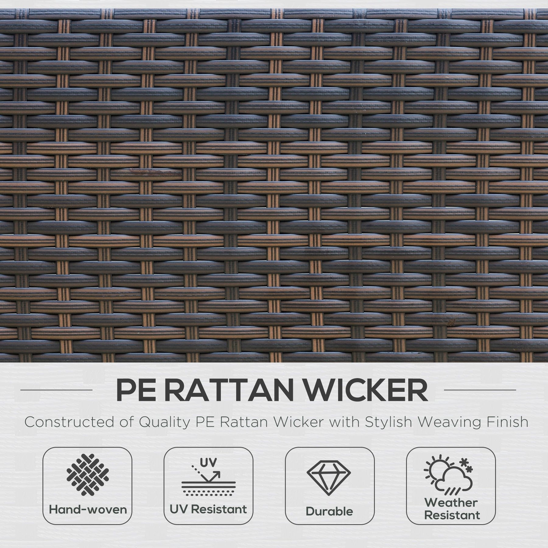 Outsunny Outdoor Lounge Chairs Set of 2 with 5-Level Angles Adjust Backrest, Thick Cushions, & Matching Table, Patio Rattan Furniture Sets for Pool Side, Balcony, Beach, Yard, MixedBrown