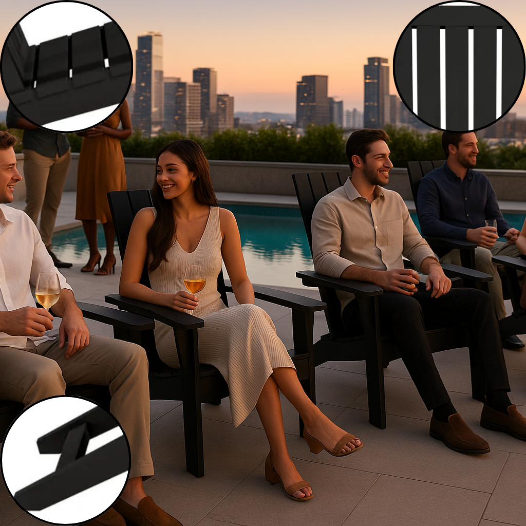 Engineered for real-world use, these chairs are both sturdy and lightweight, so rearranging your patio or storing them away is a breeze. No painting, staining, or sealing required—just clean with soap and water, and they’re good as new. The ergonomic design makes long hours of lounging comfortable, and the bold black color is versatile enough to complement any outdoor décor or accent shades. Choose Trufairs for outdoor furniture that checks all the boxes: lasting comfort, contemporary style, and hassle-free upkeep for years of reliable use.