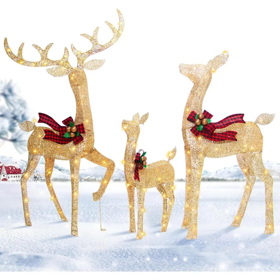 Reindeer Christmas Decoration for Yard 3Piece Light Up Reindeer Family for Christmas Outdoor Decorations Yard Lighted Xmas Deer