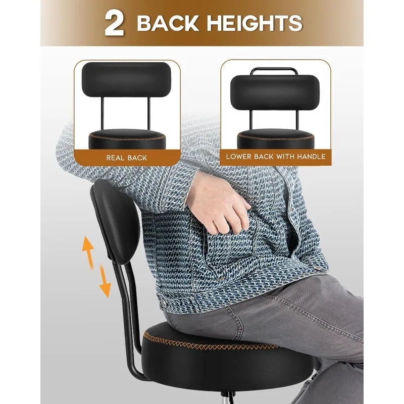 Versatile Design: The backrest adjusts to two heights and can be removed. Wheels can be swapped for rubber foot caps, turning it into a traditional shop stool.
