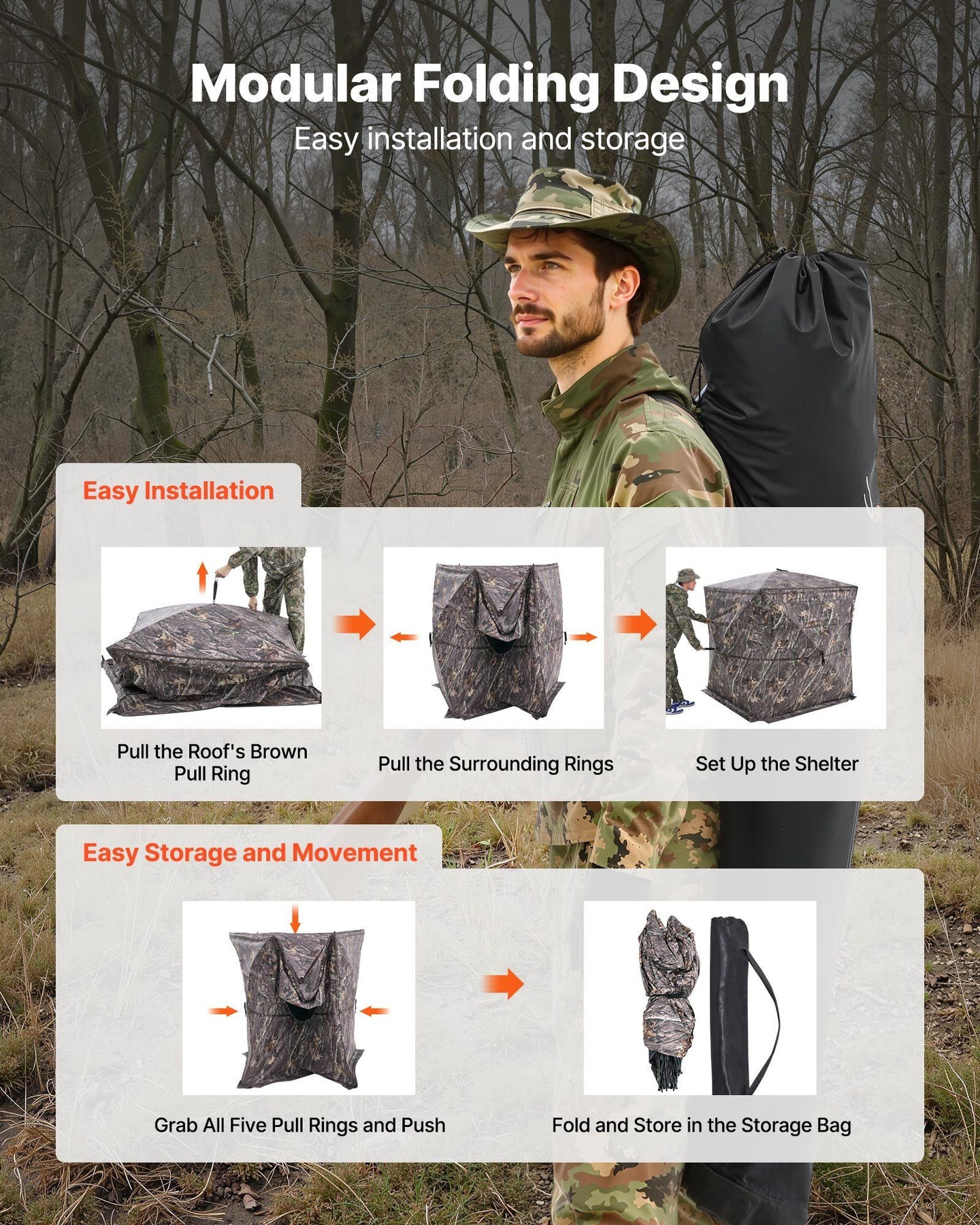 SucceBuy Hunting Blind, 270° See Through Ground Blind, 2-3 Person Pop Up Deer Blind for Hunting with Carrying Bag, Portable Tent
