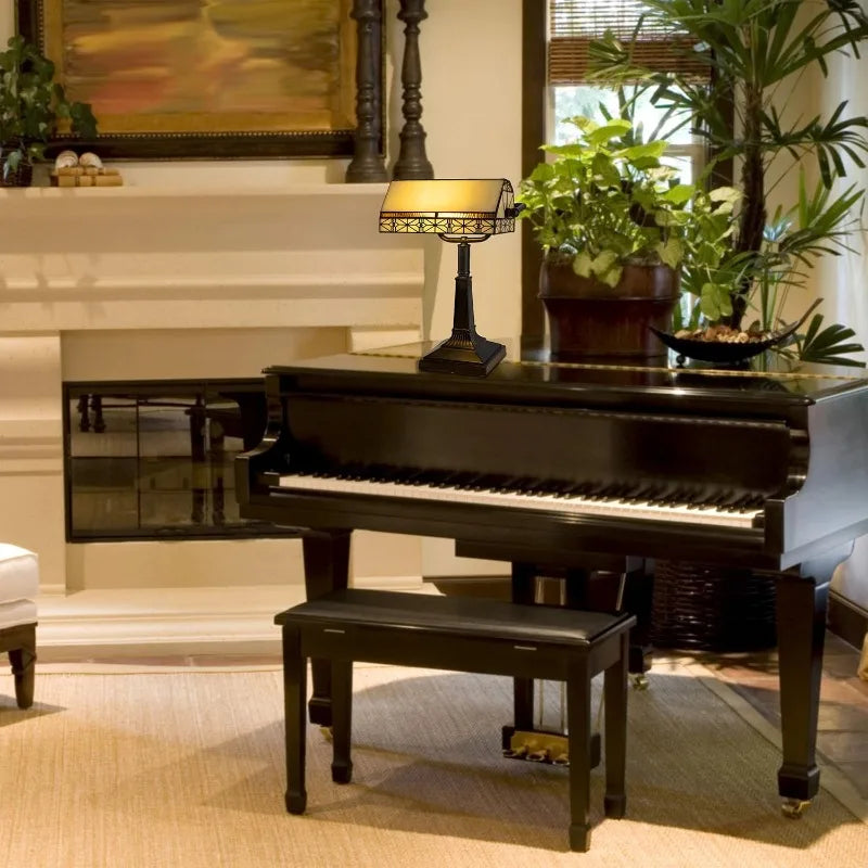 BUILT TO LAST - Enjoy long-term lighting and beauty from this antique desk lamp with banker styling. Construction from rugged wrought iron makes the base stable and strong, while the handcrafted stained glass pieces on the shade stand the test of time.