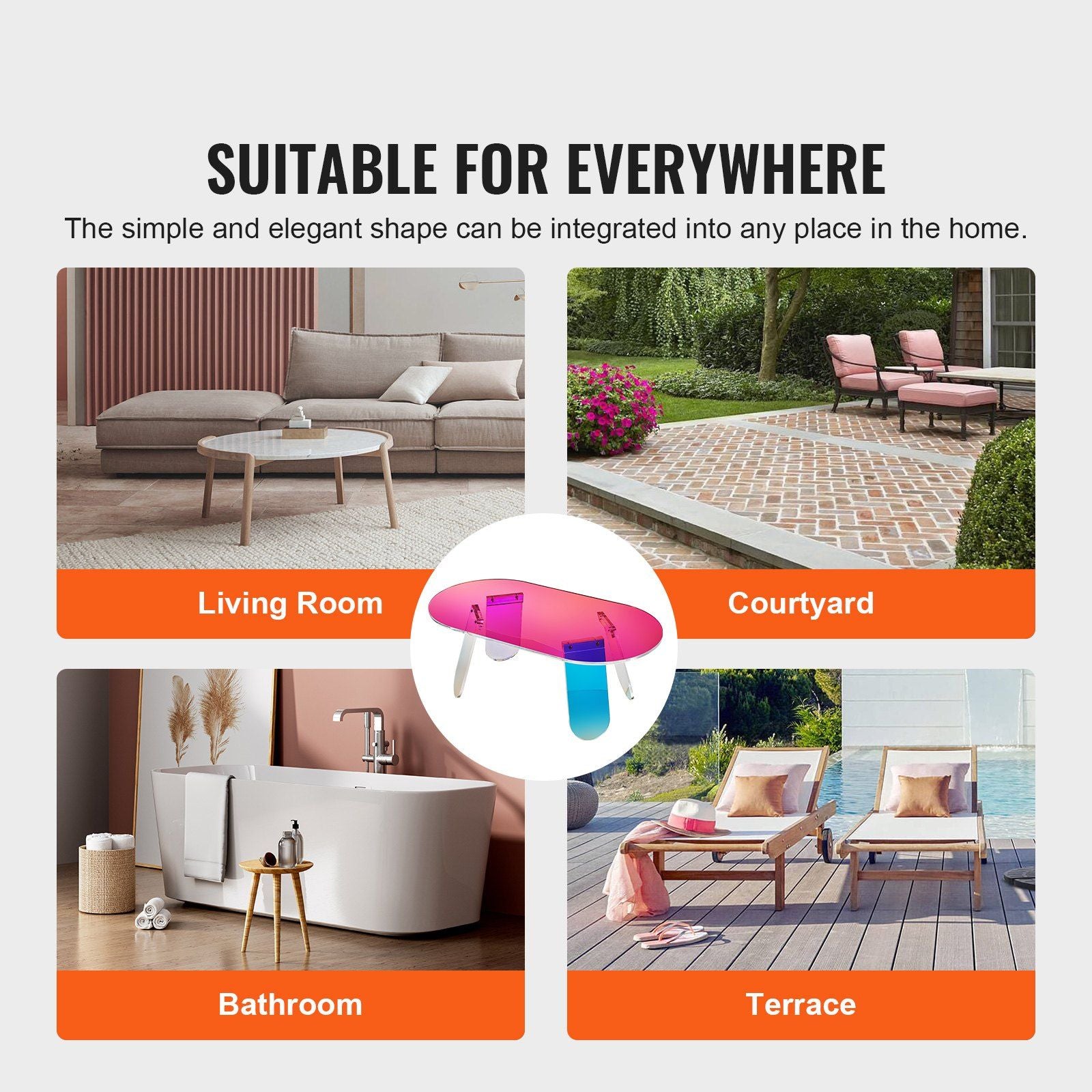 Expertly crafted from 0.5" (12mm) thick natural acrylic for superior impact resistance, this coffee table combines lightweight portability with durable, daily functionality. Accentuated by bold color shifts and smooth edges for comfort and safety, it withstands up to 55lbs and includes slip-proof, floor-protecting feet. Assembly is quick and simple, with included hardware and manual. Weatherproof and easy to clean, this piece suits indoor and outdoor use for hassle-free living. When you shop at Trufairs, you receive trusted quality, express service, and customer-first support—delivering instant, lasting style wherever you need it.