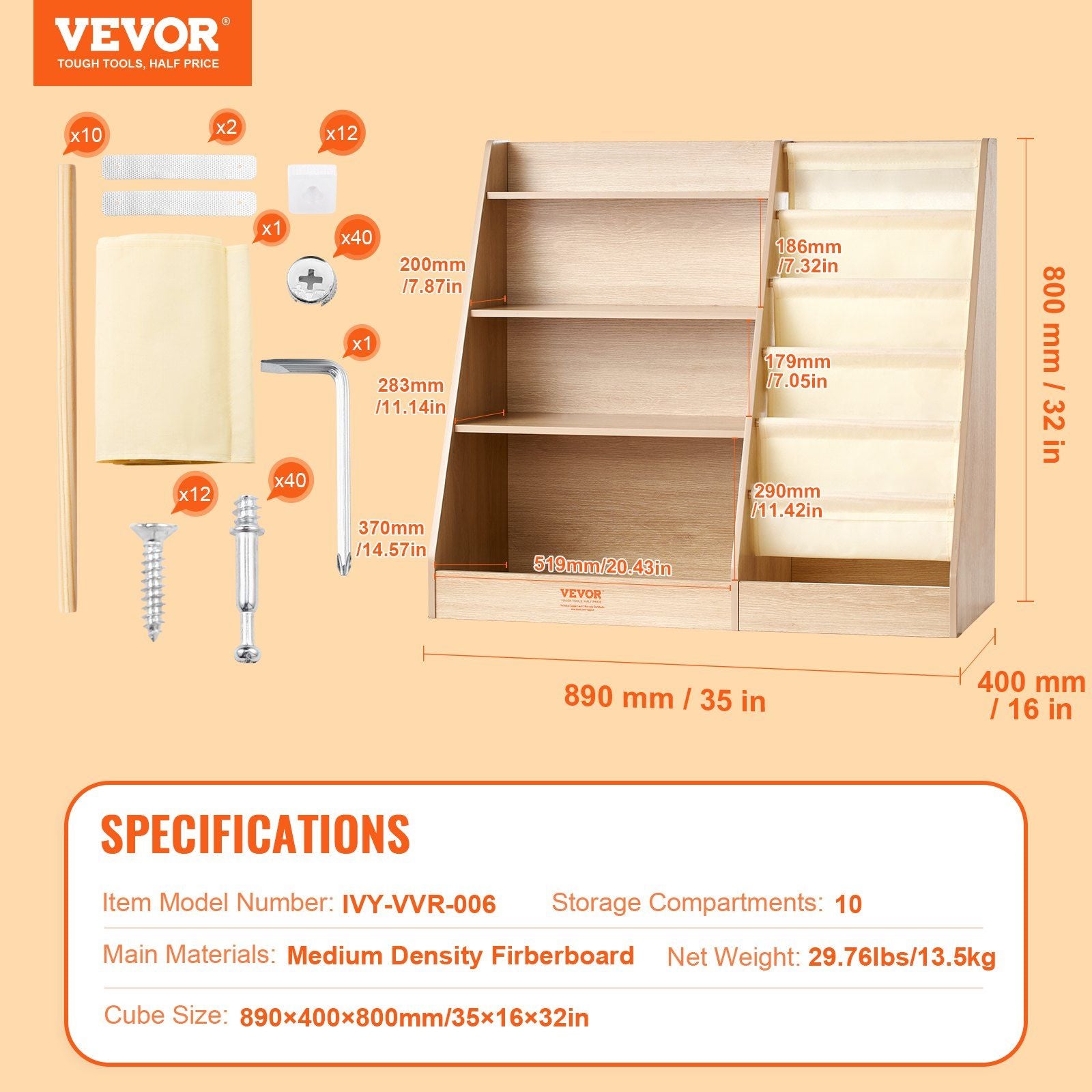 Safe and Considerate: VEVOR baby storage book rack is designed with safety and durability. With rounded edges, our cubes ensure children are safe during use, giving parents peace of mind.