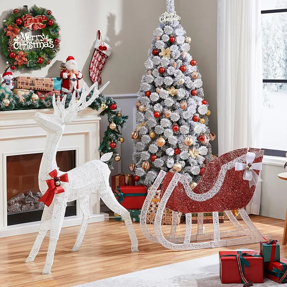 • Light Up Indoor/Outdoor Space: The Christmas reindeer and Santa's sleigh set is illuminated by 205 UL-listed LED lights, making it safe for both indoor and outdoor use. This set is ideal for creating beautiful landscape scenes, enhancing your holiday yard, adding charm to your outdoor lawn, and bringing imaginative indoor displays to life